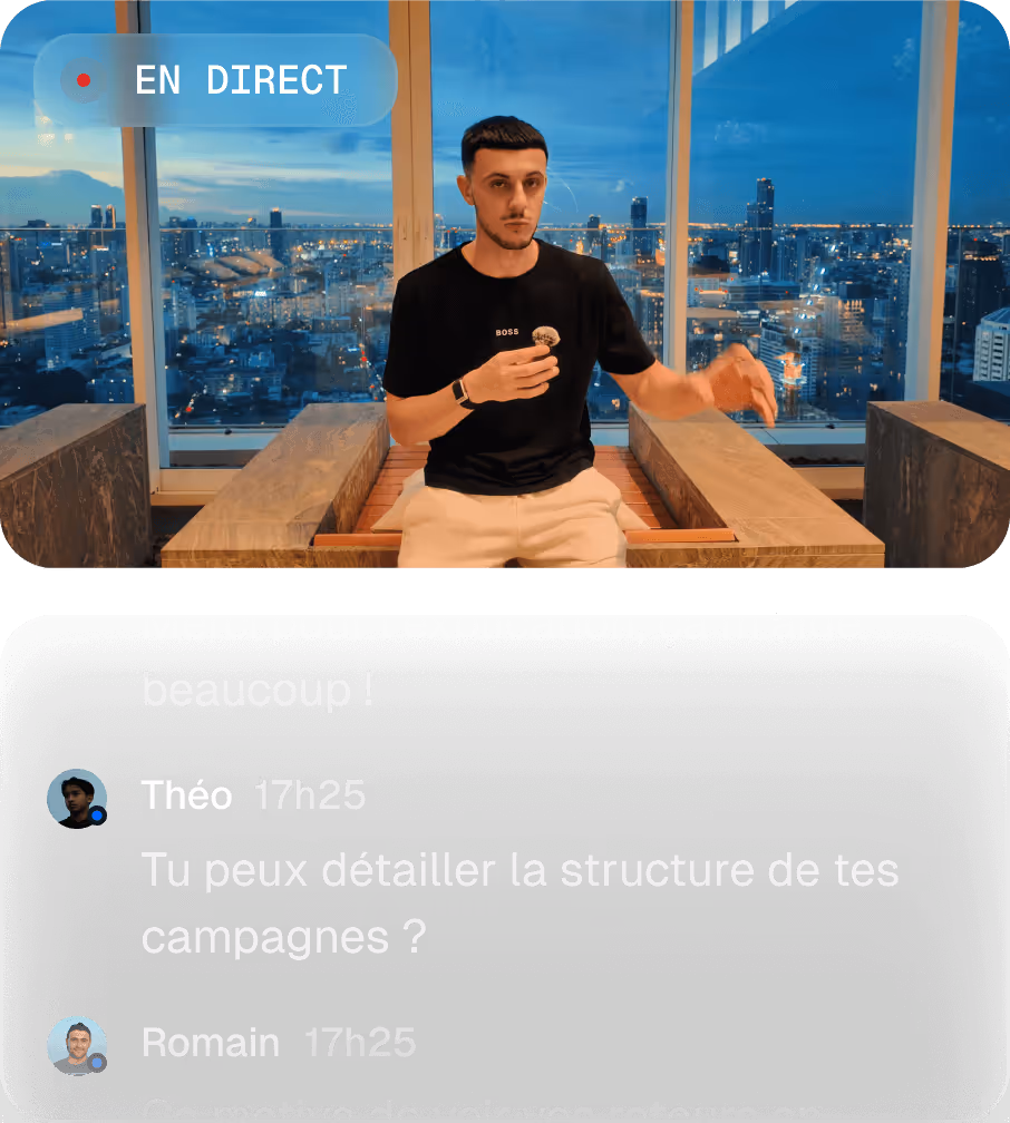- 🎙️ Invités experts qui interviennent régulièrement pour débloquer des points précis (pubs, scaling, logistique, etc.)