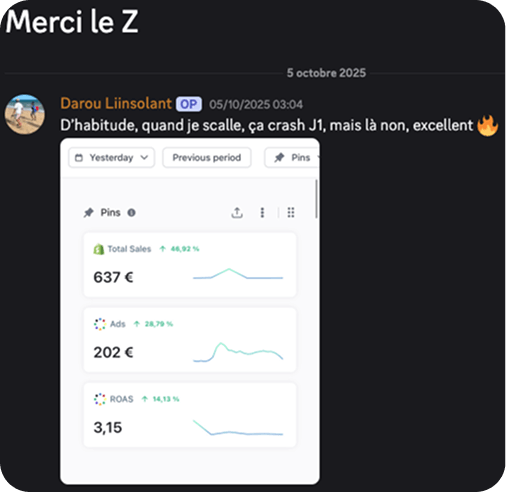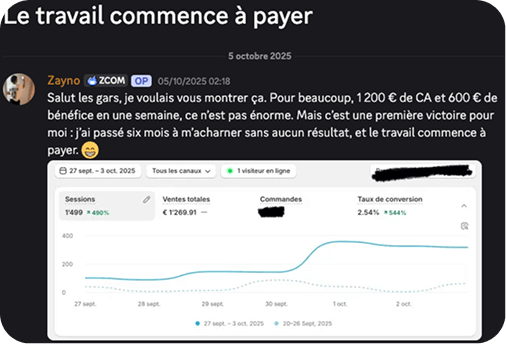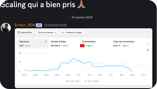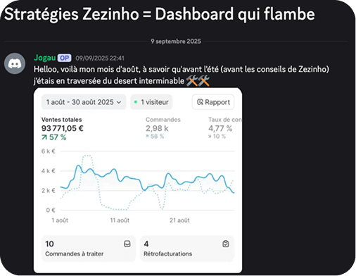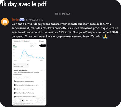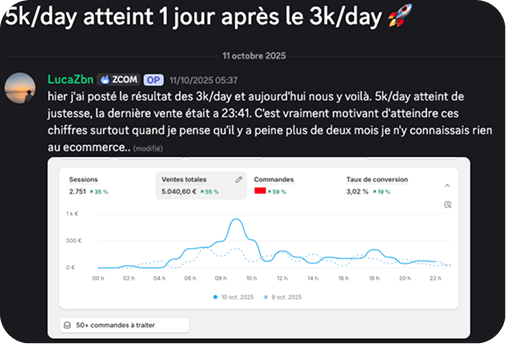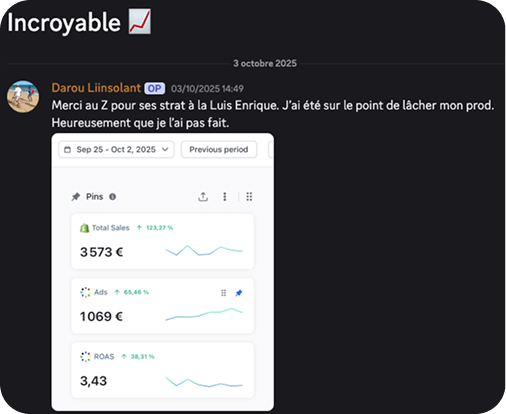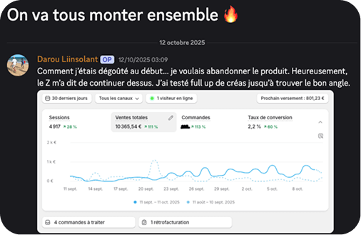 Tu accèdes à une communauté Discord ultra active, avec des membres de tous niveaux : débutants comme e-commerçants confirmés.